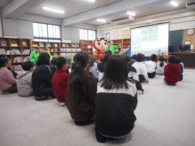 11月27日(木)に3名の人権擁護委員さんを招いて、人権の花贈呈式及び人権教室を行いました。初めに全校で「人権」や「人権擁護委員の仕事」等についてお話を聞き、人権の花の贈呈を受けました。